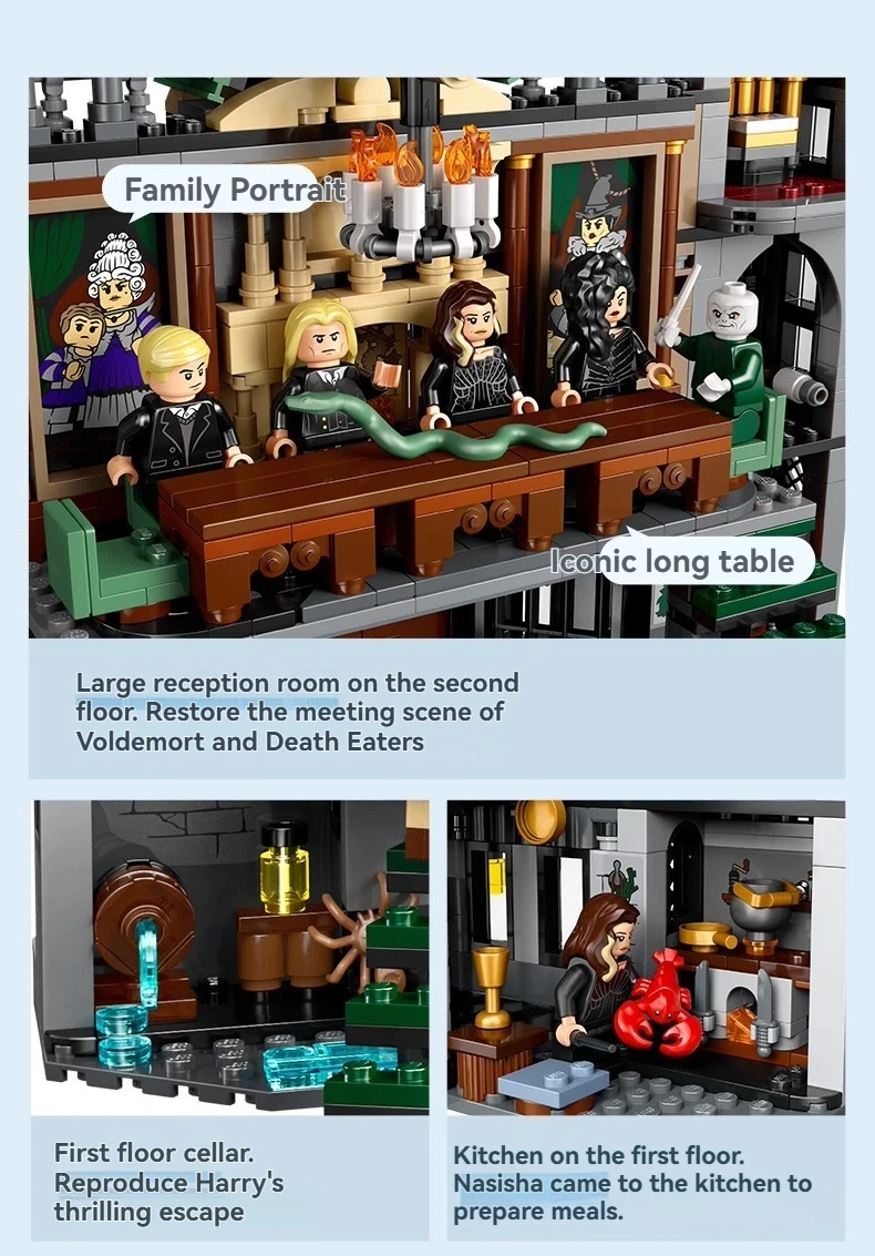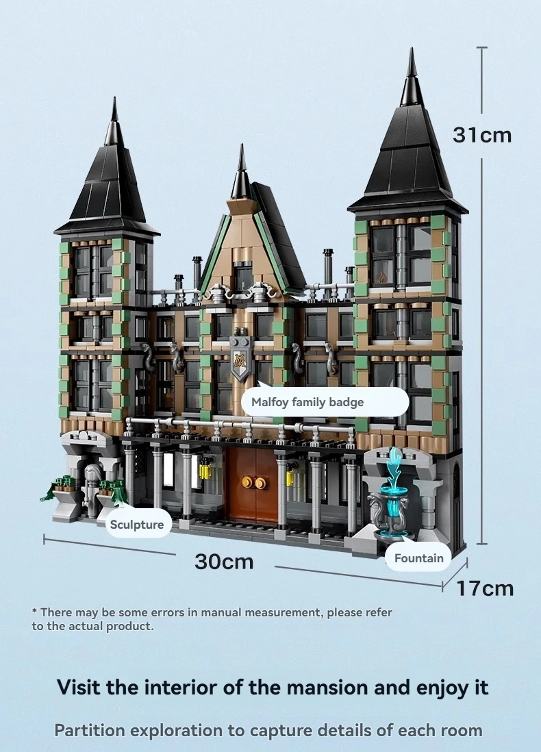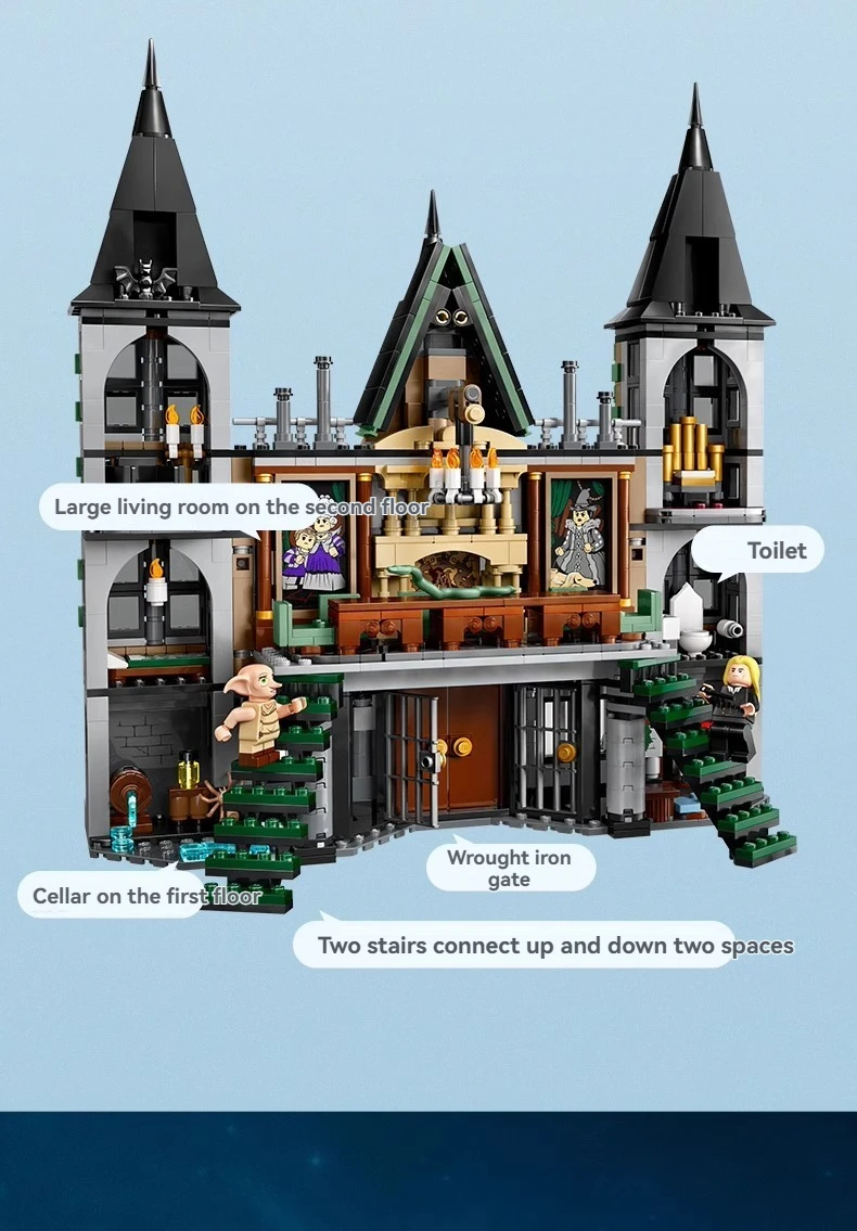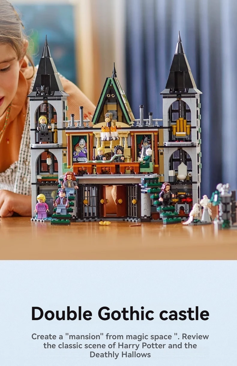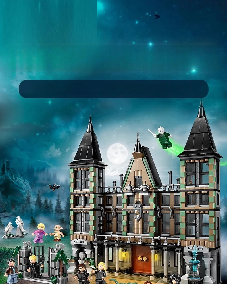 1600+ Pieces Harry *otter Series Movie-themed Limited Edition Malfoy Manor Assembling Logo Set for Children Toys