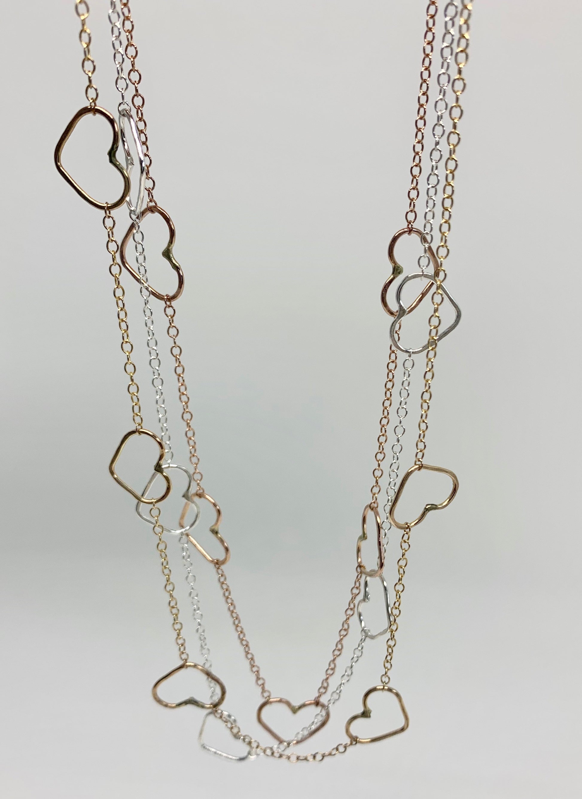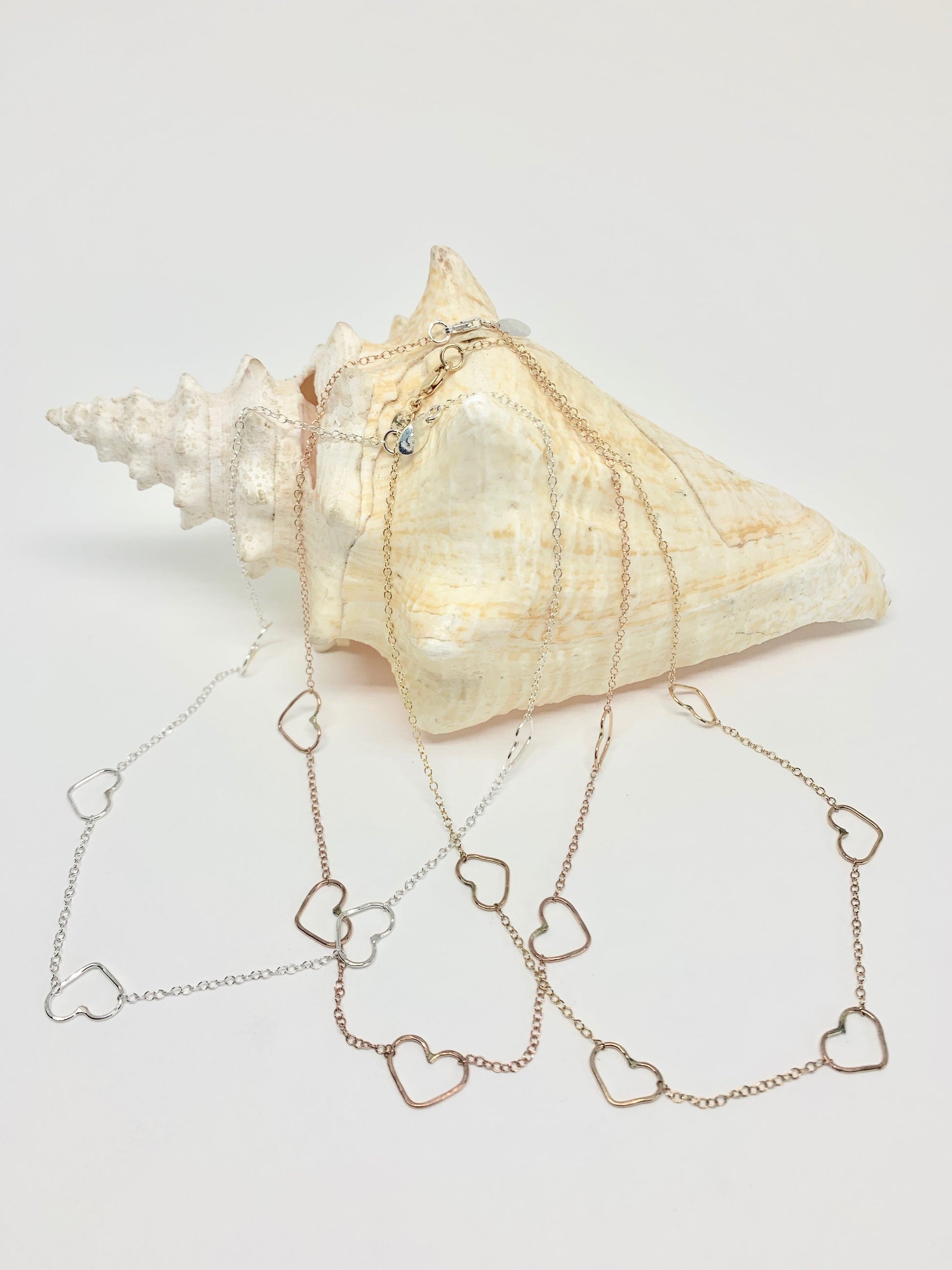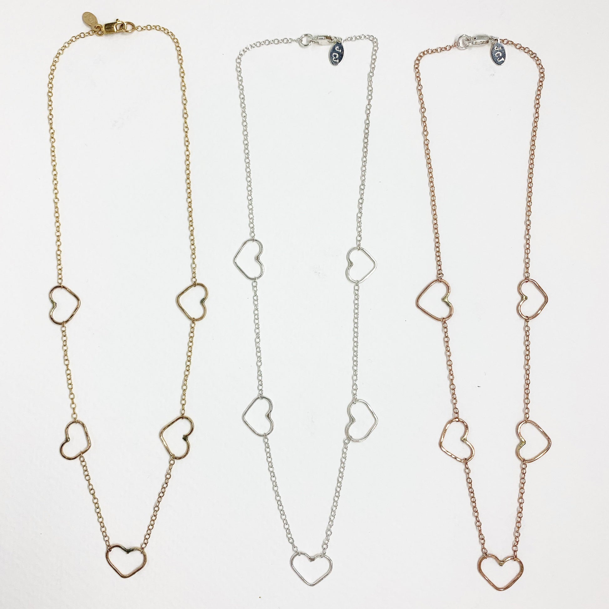 Heart Chakra Choker Necklace is completely handmade and hand formed hearts in 18 gauge wire that is then textured hammered for a rustic, organic effect. This is available in your choice of metal - sterling silver, rose gold fill, or yellow gold fill. Available in your chosen chain length, and it comes with a 1 inch extender.
